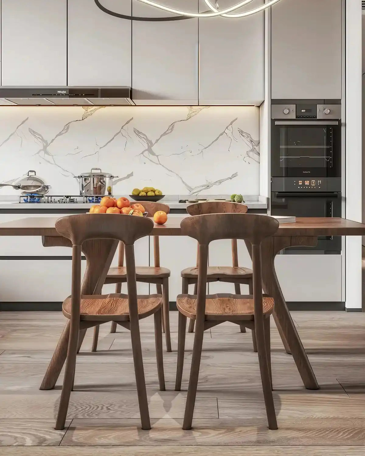 With its elegant tone and subtle sheen, this chair effortlessly complements modern, Scandinavian, or Japandi interiors, adding both warmth and sophistication to any dining setting.