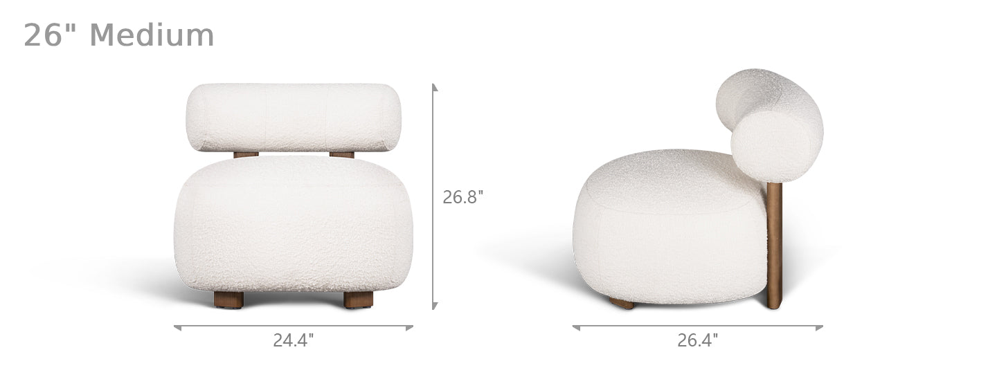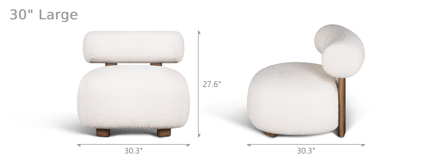 Elevate your living space with the Kumo Chair—a seamless fusion of mid-century flair and modern minimalism. Its signature rolled backrest and gently curved arc silhouette strike the perfect balance between refined elegance and laid-back comfort. Generously padded and upholstered in sumptuous, tightly looped boucle fabric, this lounge chair invites you to sink in and unwind after a long day of work or reading.