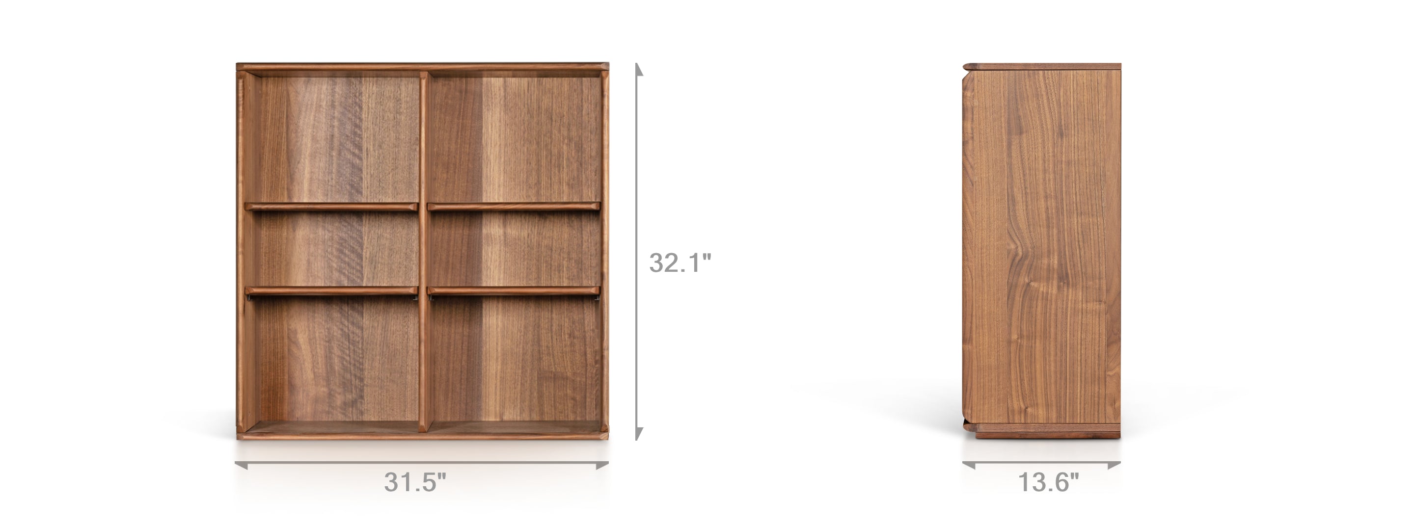 Crafted from premium North American walnut, Modular layout allows flexible configurations, Natural wood wax finish is safe and elegant, Clean, modern design matches any interior, Multi-use: from TV stand to bedside table